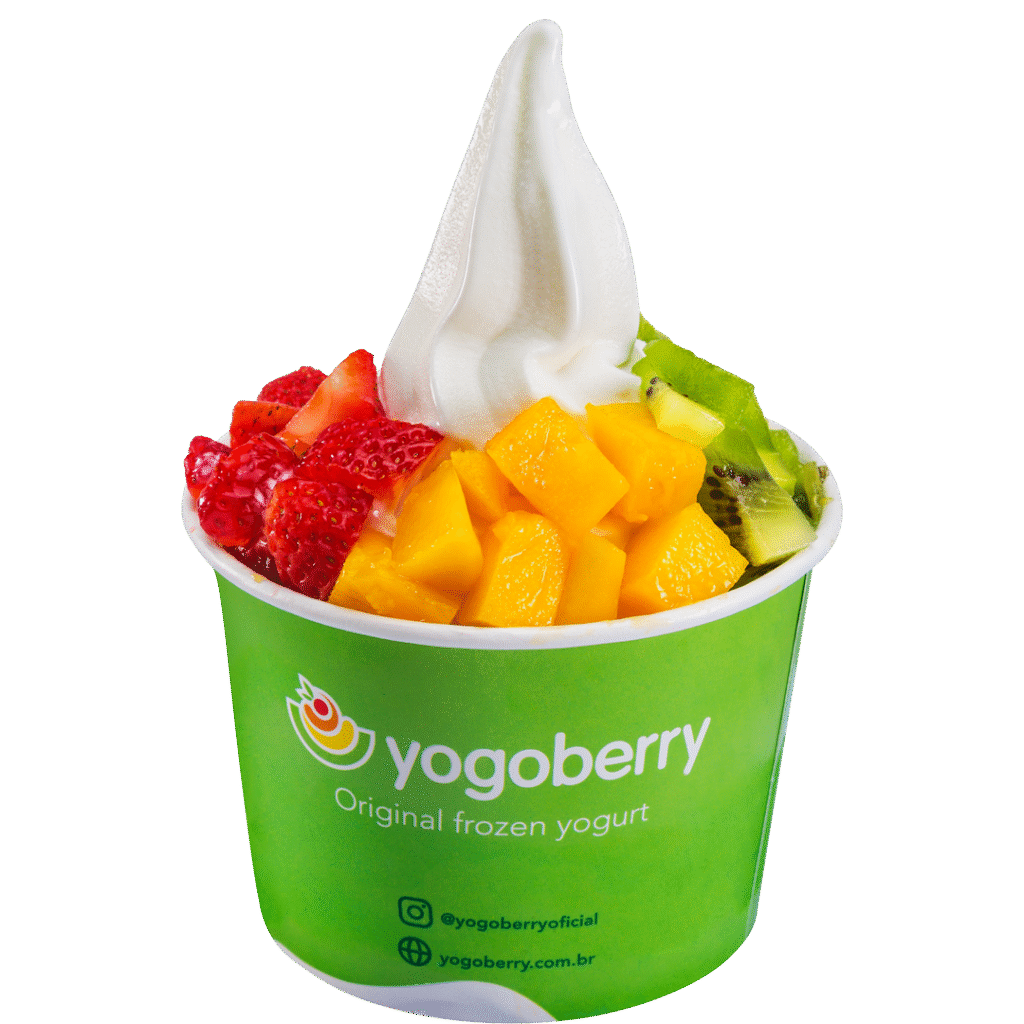 Frutas frescas servidas com frozen yogurt ou yocream (consulte a disponibilidade na loja) fica maravilhoso. Experimente também a versão com calda de brigadeiro, é delicioso.