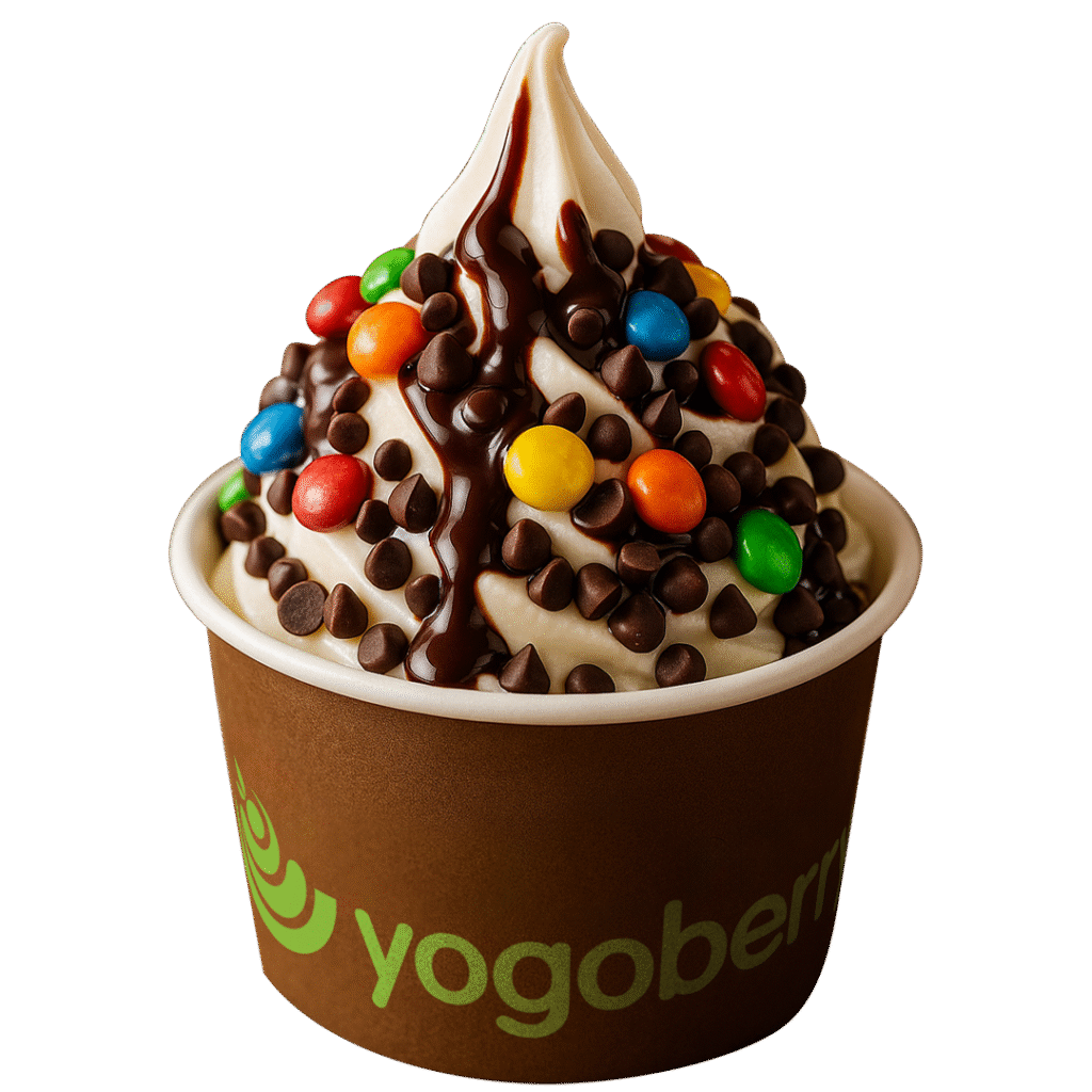 Mais de 30 opções de toppings (aqueles maravilhosos acompanhamentos que escolhemos na hora de montarmos nosso frozen yogurt) entre frutas frescas, cereais, grãos, chocolates, doces e caldas